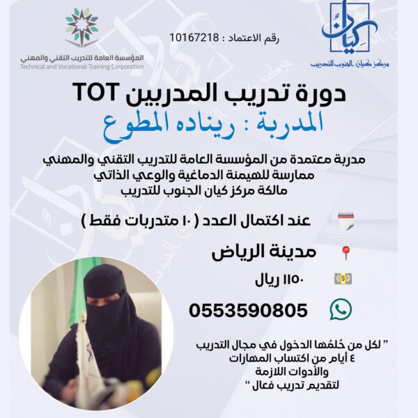 لكل من حلمها الدخول لمجال التدريب مقر الدورة : الرياض – ...